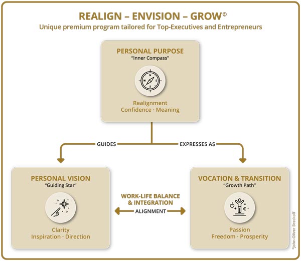 A personalized process that integrates uncovering your unique Purpose, designing an inspiring new Vision and identifying your true Vocation.